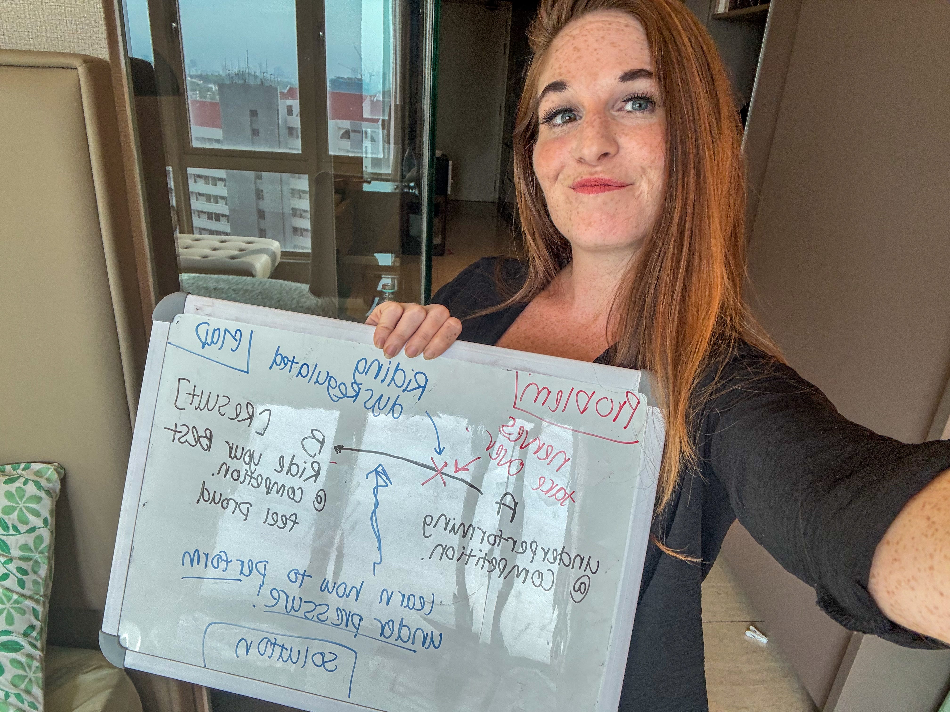 She chose to focus on competition riders who were underperforming on show day despite all the training.